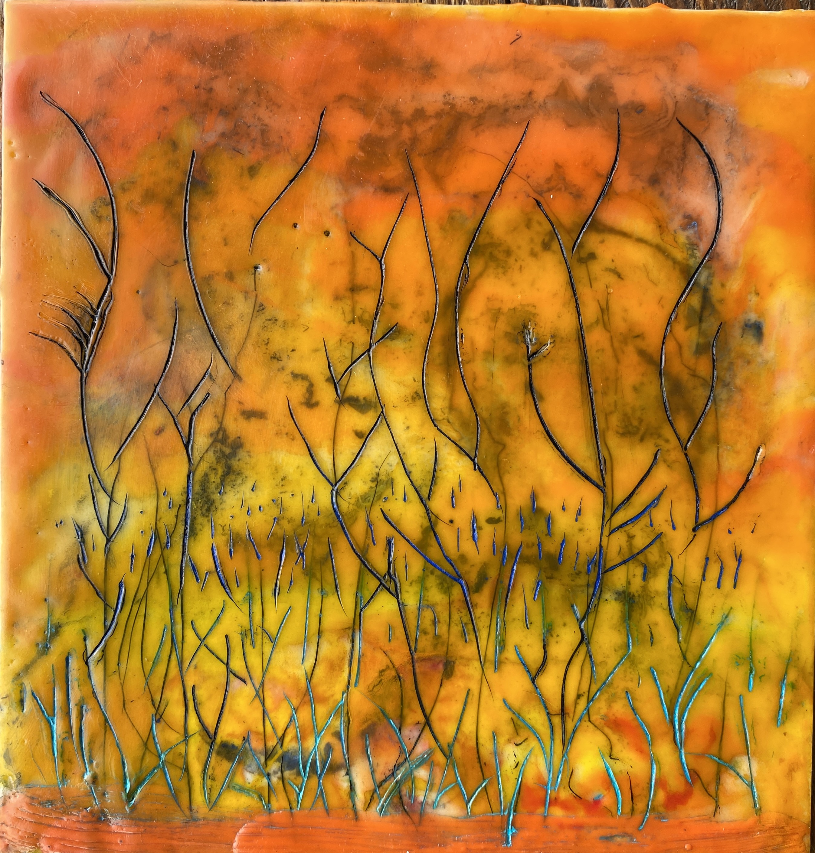Meg Gaddum grew up on a remote Gisborne farm, surrounded by nature and art. Encouraged by artist relatives, she began painting early, inspired by vivid materials like French pastels. Though a science career led her into agriculture, horticulture, and, via a master’s degree in landscape architecture, she ultimately returned to art. Self-taught through books and online courses, Meg now paints abstract landscapes that reflect environmental and social themes while aiming to evoke joy. She lives with her husband and dogs by Ōhiwa Harbour, exhibits at art shows, and sells her work from her studio. Her art blends observation, critique, and sustainability.